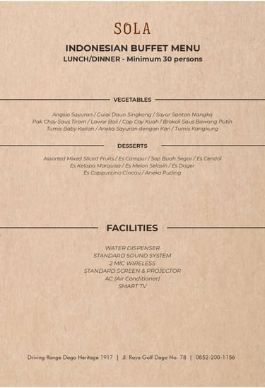 Kapasitas tamu bervariasi tergantung pada jenis acara. Hubungi kami untuk diskusi spesifik.